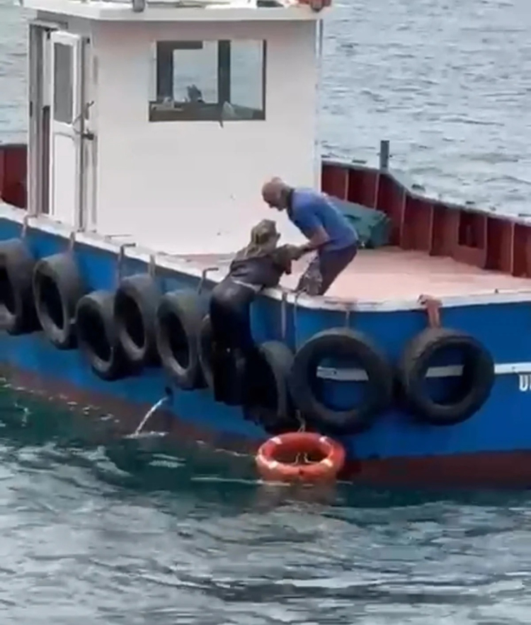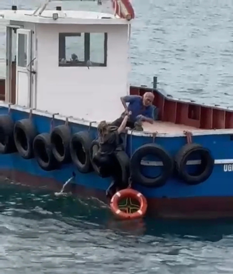 Can simidine tutunan kadın, balıkçı teknesindekiler tarafından sudan çıkarıldı.