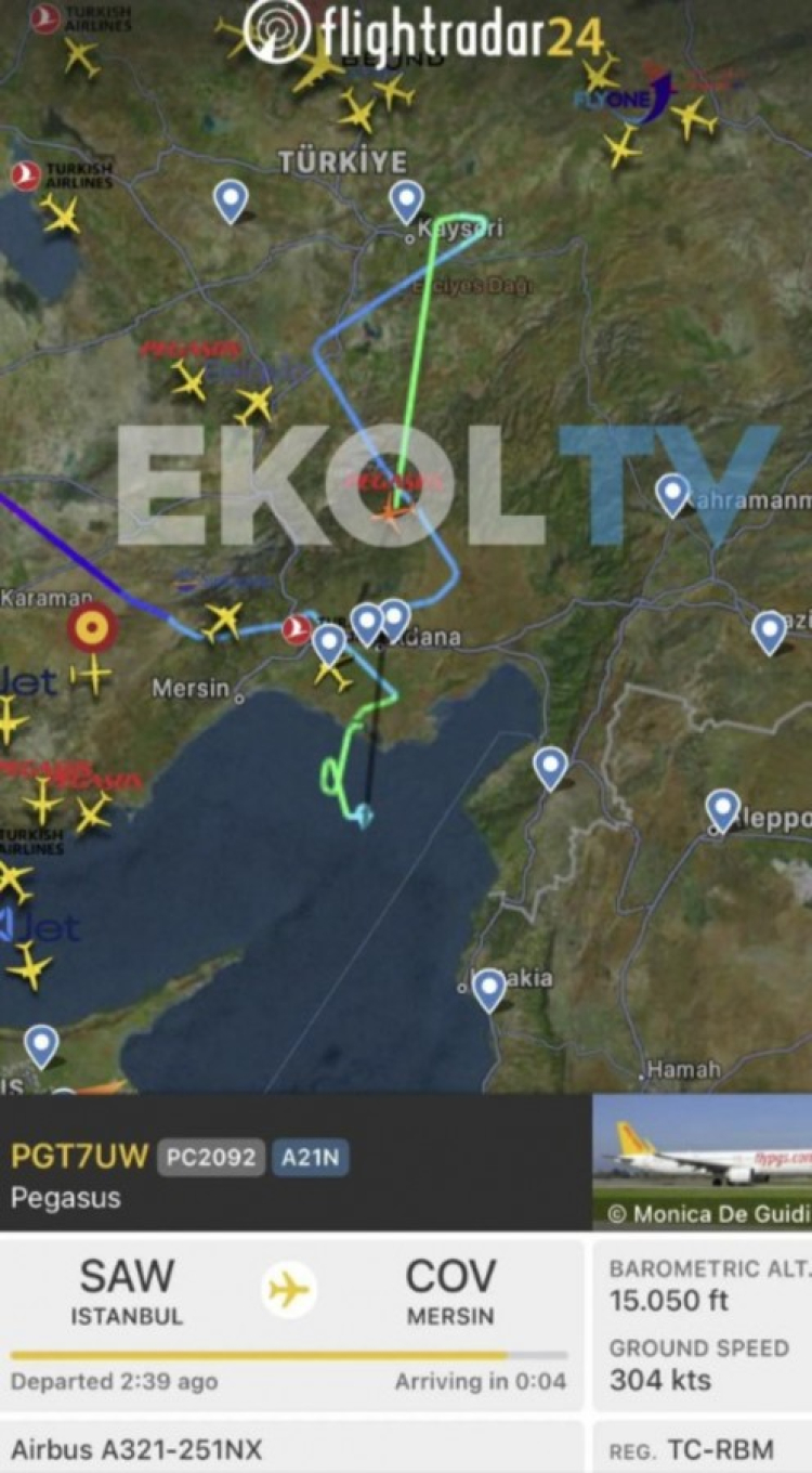 Yolcuların iddiasına göre İstanbul'da Sabiha Gökçen Havalimanı'ndan kalkan ve Mersin'e giden Pegasus Havayolları'na ait uçak Akdeniz semalarında 3 kez düşme tehlikesi yaşadı.