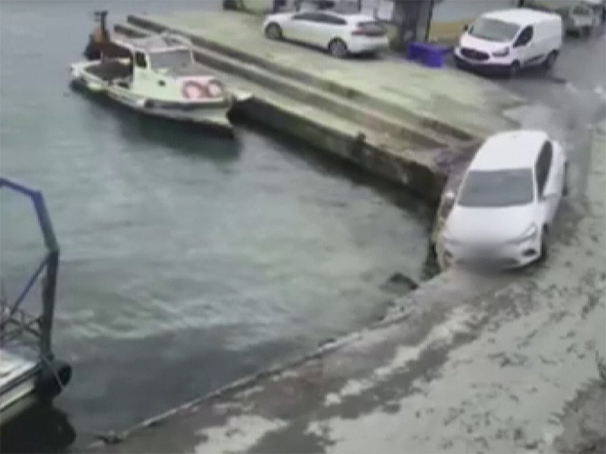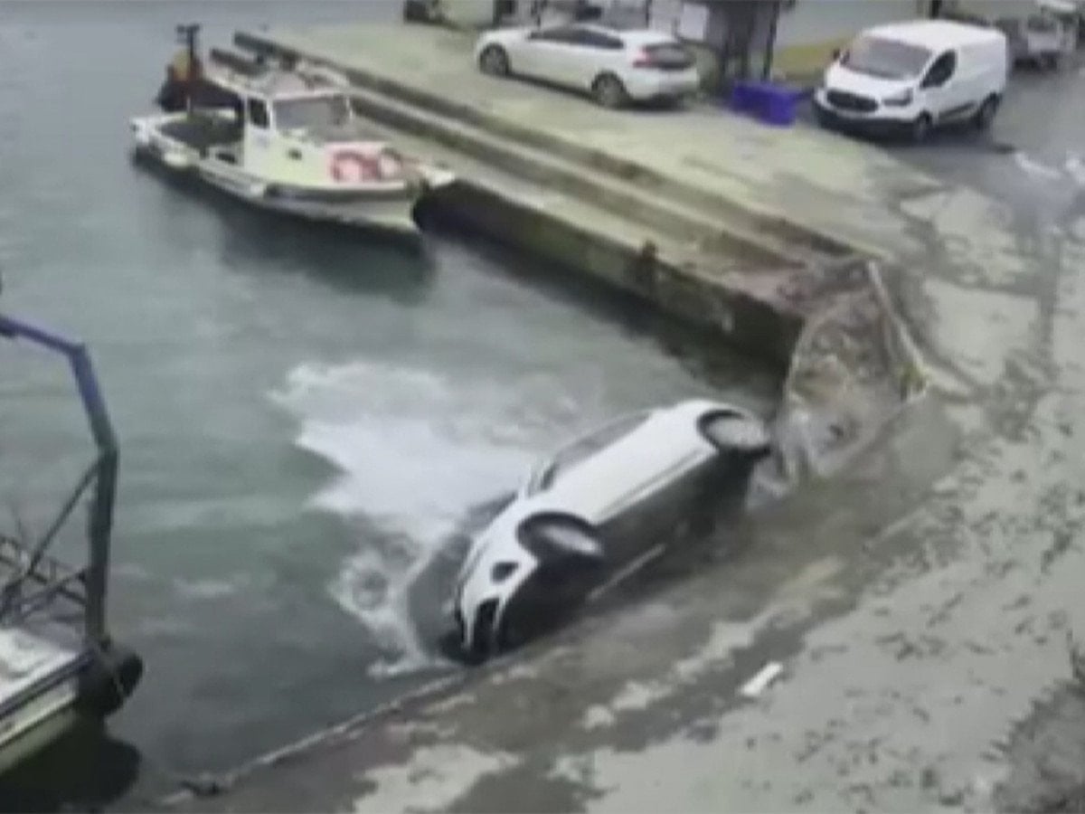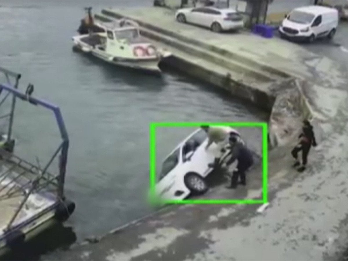 İstanbul Sarıyer'de otomobilin balıkçı barınağından denize düşmesi güvenlik kamerasına yansıdı.