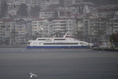 İzmir'de şiddetli rüzgar ve olumsuz hava koşulları nedeniyle vapur seferlerinin iptal edildiği duyuruldu.