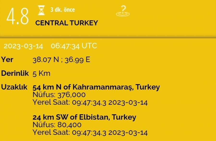 Buna göre Elbistan'da 4.8 büyüklüğünde bir deprem meydana geldi.