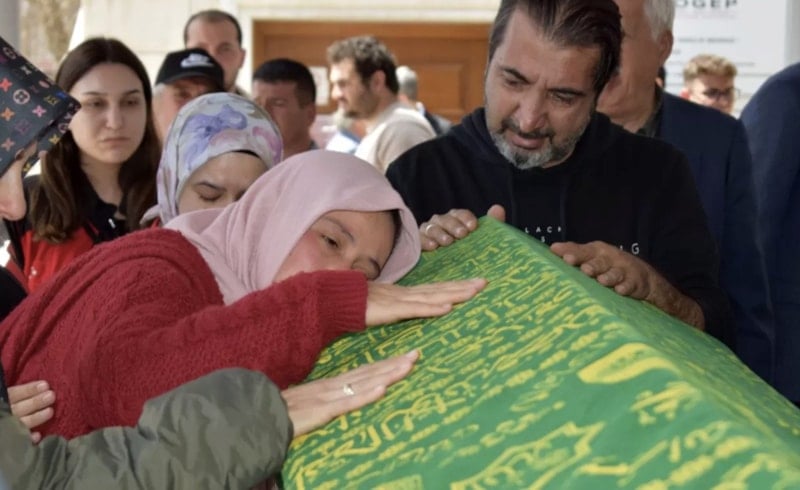 Cenaze törenine katılan matematik öğretmeni Muhammet Barış Akdağ, öğrencisinin tabutu başında gözyaşı döktü.