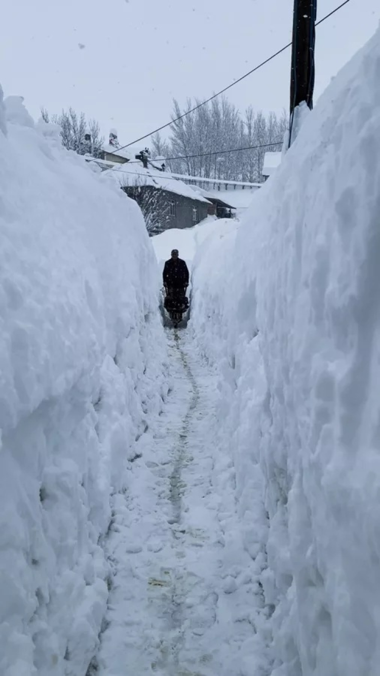 Koyungölü köyü sakinleri de sabahın erken saatlerinden itibaren küreklerle insan boyunu geçen karları kürekler ile temizleyerek evlerinin önünü ve yollarını açmaya çalıştı.