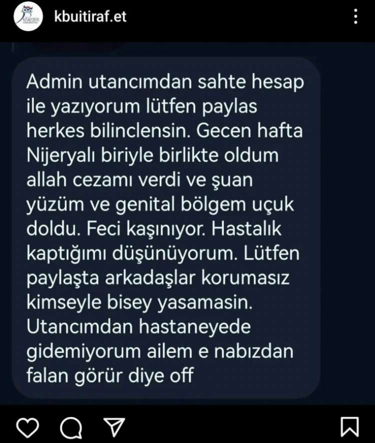 Karabük Üniversitesi İtiraf Sayfası'nda Afrikalı ögrencilerle cinsel birliktelik yaşayan Türk erkek ve kız öğrencilerin 'itirafları' gündeme bomba gibi düştü. İddiaya göre kimi HPV kimi de HIV şüphesiyle hastaneye gittiğini anlatıyor.