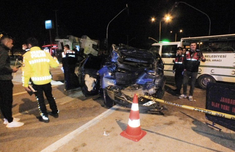 Balıkesir'in Bandırma ilçesinde TIR'ın, kırmızı ışıkta bekleyen otomobile arkadan çarpması sonucu Nihat Şentürk öldü, 1'i ağır 3 kişi de yaralandı.