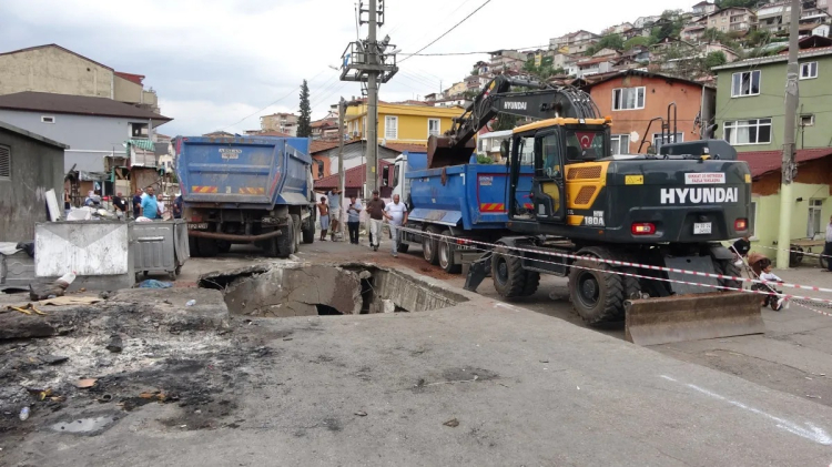 İzmit ilçesinde hafriyat kamyonu, seyir halindeyken beton zeminin çökmesi sonucu oluşan çukura düştü. Olay sırasında sokakta kimsenin bulunmaması muhtemel bir faciayı önledi.