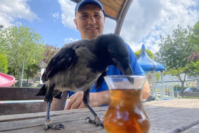 Kocaeli'de 3.5 ay önce yaralı olarak bulduğu yavru kargayı sahiplenen Ömer Tek, hayvanla dostluk kurdu. Kargayı çay ve etle besleyen Tek, artık onu evladı olarak görüyor.