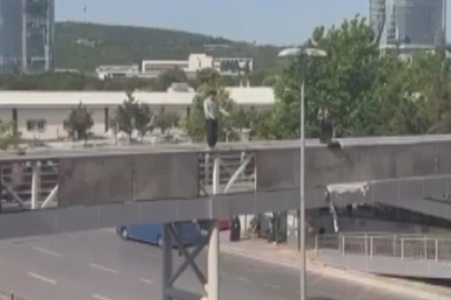 Korku dolu anlar! Üst geçitten atladı...