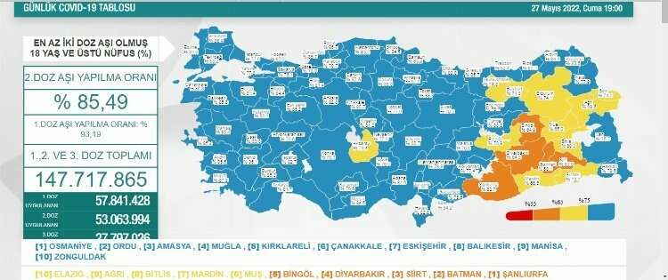 Sağlık Bakanlığı, 27 Mayıs 2022 tarihine ait son koronavirüs verilerini paylaştı