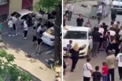Görüntülerde madde etkisinde olduğu iddia edilen şahsın kalabalık bir grup tarafından dayak yediği, şahsın ise dayaktan kaçabilmek için bir aracın üstüne çıktığı anlar yer aldı.