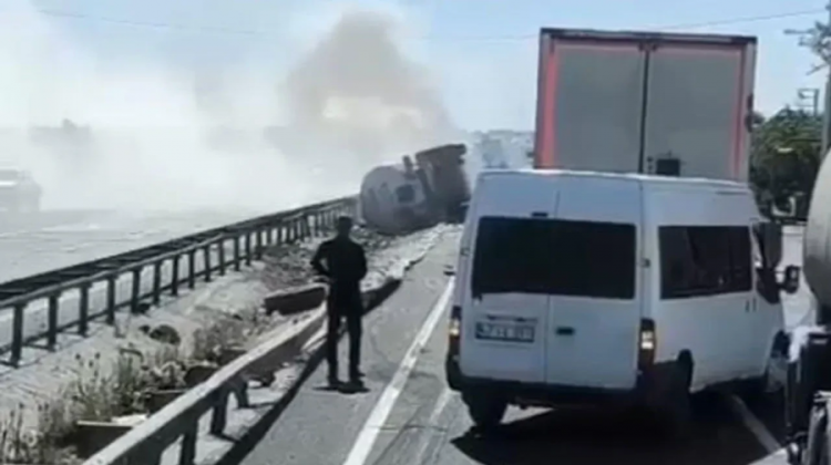 Acı olay Nusaybin ilçesinde meydana geldi. İlçe girişinde kontrolden çıkan akaryakıt tankeri yan yattı.