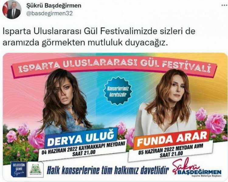 Isparta Belediye Başkanı Şükrü Başdeğirmen de akşam saatlerinde Twitter hesabından konserlerin afişini yeniden paylaştı. Mosso'nun konserine burada yer verilmediği görüldü. Uluğ ve Arar'ın konser programı ise değişmedi.