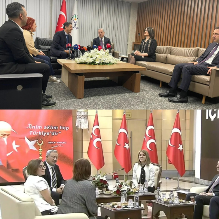 Kurban Bayramı kapsamında, siyasi parti heyetlerinin bugün karşılıklı resmi ziyaretlerle bayramlaşma mesaisi başladı.Bu kapsamda da DEM ve MHP heyetleri, karşılıklı olarak birbirlerini ziyaret etti.MHP, misafirlerini Genel Başkan Yardımcısı Zühal Topcu başkanlığındaki heyetle kabul etti.DEM Genel Merkezi'ne ise Genel Başkan Yardımcısı Sadir Durmaz başkanlığındaki heyet gitti.