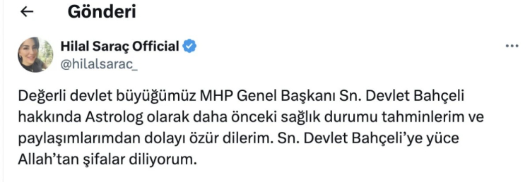 MHP liderinin sağlık durumuyla dalga geçmişti: Astrolog Hilal Saraç özür diledi