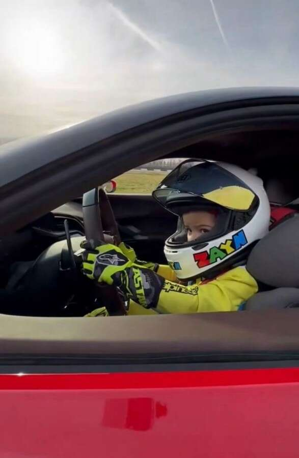 Babasının değeri 40 milyonun üzerindeki lüks Ferrarisi'ni pistte tek başına kullanan Zayn adeta ağızları açık bıraktı.