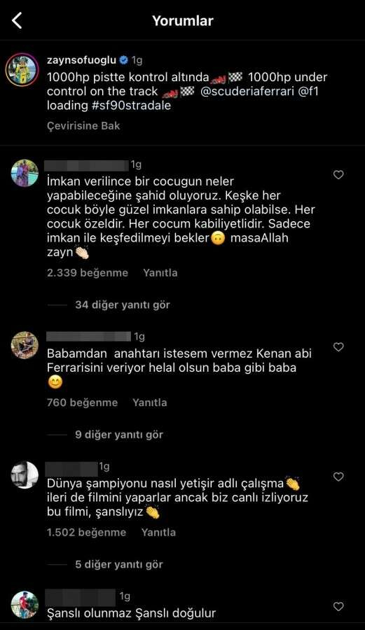 Zayn Sofuoğlu'nun sosyal medya hesabından '1000 hp pistte kontrol altında' denilerek yapılan paylaşım ise kısa sürede 2 milyonun üzerinde izlenmenin yanı sıra yüz binlerce yorum ve beğeni de aldı.