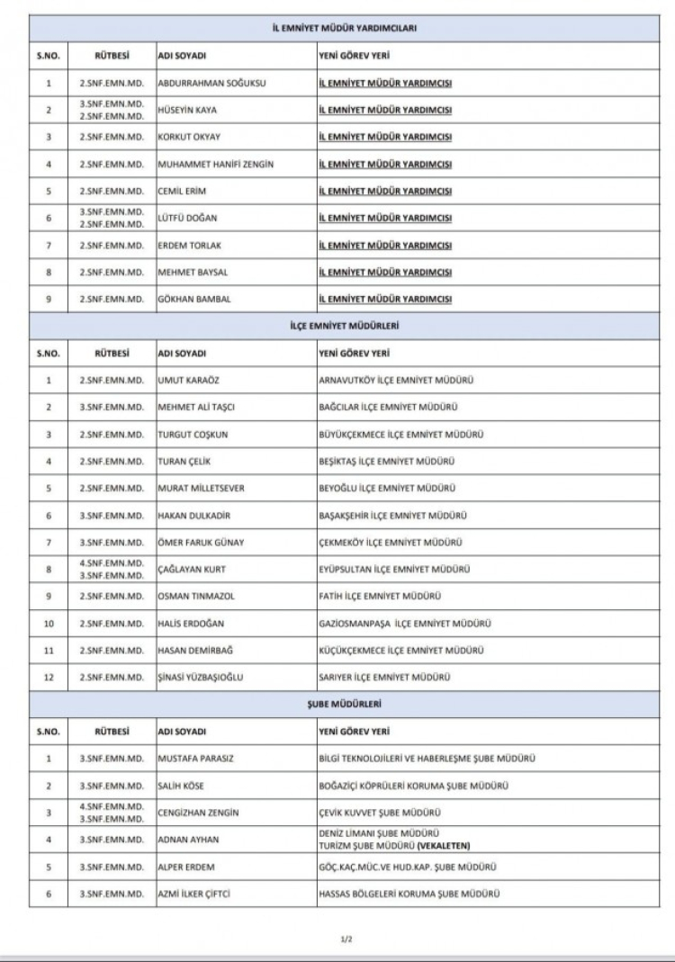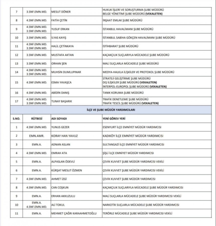 Atama kararında ünlü sunucu Müge Anlı'nın eşi Şinasi Yüzbaşıoğlu da dikkat çekti. Yüzbaşıoğlu, Beşiktaş İlçe Emniyet Müdürlüğü'nden Sarıyer İlçe Emniyet Müdürlüğü'ne tayin oldu.