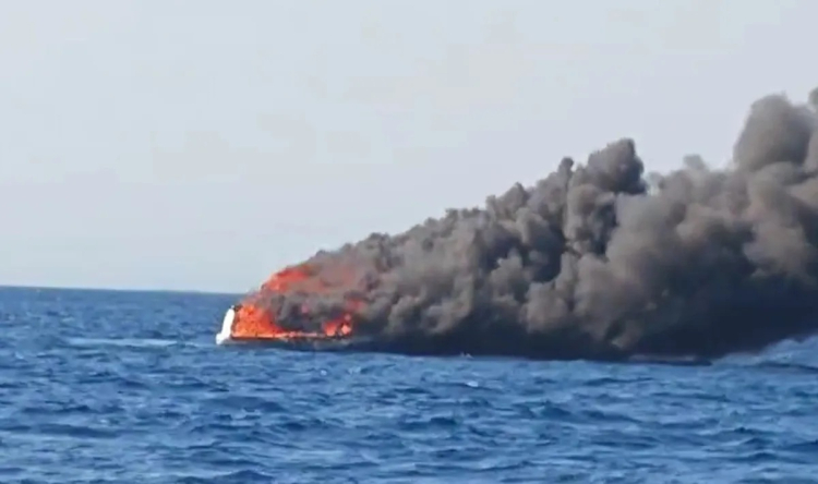 Tamamen yanan yat batarken, olayla ilgili soruşturma sürüyor.