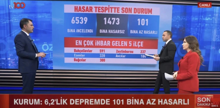 Bakan Murat Kurum, tv100 canlı yayınında depremin hasar raporunu açıkladı.