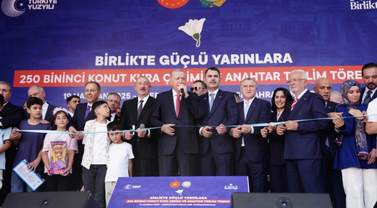 Cumhurbaşkanı Erdoğan ve Azerbaycan Cumhurbaşkanı İlham Aliyev'ın katıldığı törende yapımı tamamlanan konutlar, hak sahibi afetzedelere teslim edildi.