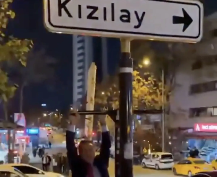 CHP Erzincan Milletvekili Mustafa Sarıgül, Ankara'nın viral olan 'Kızılay' tabelasına asıldı. Sosyal medyada paylaşılan görüntüler kısa sürede gündem oldu.