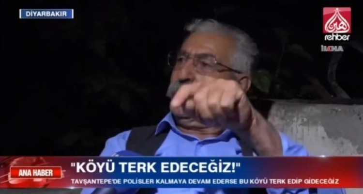 Mikrofon uzatılan eski muhtarın "Ben geliyorum, ben dedim ben muhtarım, kimse biz konuşmuyoruz; çekin, buradan gidin... Sanki bizi köyden kovalıyor yani. Ben Cumhurbaşkanı'na sesleniyorum, Vali Bey'e sesleniyorum, İçişleri Bakanı'na sesleniyorum; bu polisler burada kalırsa cinayet çıkacak. Bu köyde illa ki bir cinayet olacak yani. Ben bunu biliyorum. Ya cami... Bırakmıyor biz namaza gidelim. Bu nasıl, bu ne biçim yani bu devlettir."