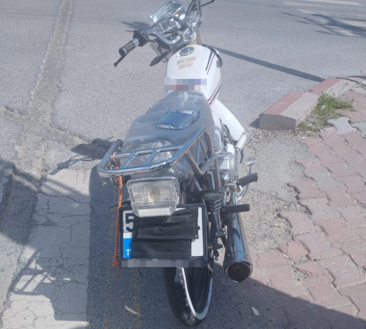 İlçe merkezinde devriye gezen trafik ekipleri, plakasını maske ile kapatan bir motosiklet gördü. Motosiklet sürücüsünün önünü kesen polis ekipleri, sürücüyü kaçmak isterken yakaladı.