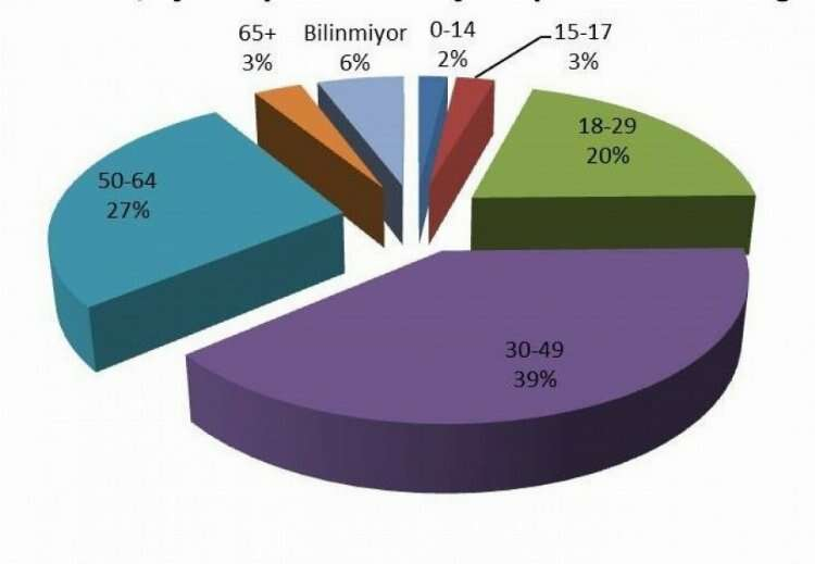14 yaş ve altı 3 çocuk işçi, 15-17 yaş arası 4 çocuk/genç işçi, 18-29 yaş arası 32 işçi, 30-49 yaş arası 62 işçi, 50-64 yaş arası 43 işçi, 65 yaş ve üstü 5 işçi, yaşını bilmediğimiz 9 işçi hayatını kaybetti.