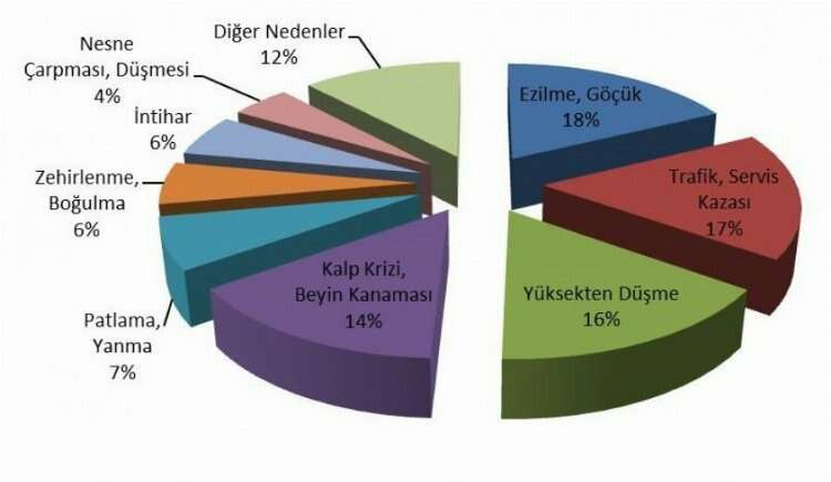 Ezilme, Göçük nedeniyle 28 işçi; Trafik, Servis Kazası nedeniyle 27 işçi; Yüksekten Düşme nedeniyle 25 işçi; Kalp Krizi, Beyin Kanaması nedeniyle 23 işçi; Patlama, Yanma nedeniyle 11 işçi; Zehirlenme, Boğulma nedeniyle 9 işçi; İntihar nedeniyle 9 işçi; Nesne Çarpması, Düşmesi nedeniyle 7 işçi; Elektrik Çarpması nedeniyle 4 işçi; Şiddet nedeniyle 3 işçi; Kesilme, Kopma nedeniyle 1 işçi, Covid-19 nedeniyle 1 işçi; diğer nedenlerden dolayı 10 işçi hayatını kaybetti.