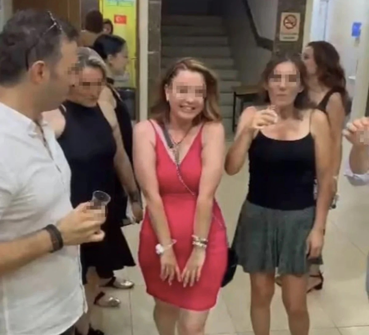 Görüntüde öğretmenlerin okul içerisinde dans ederek şampanya içtikleri görüldü.