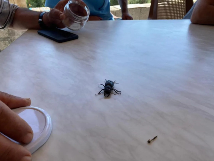 İlk başta sıradan bir böcek olduğunu düşünen arkadaşlar, daha sonra detaylı incelediklerinde bu canlının Türkiye'de nadir görülen geyik böceği olduğunu fark etti.