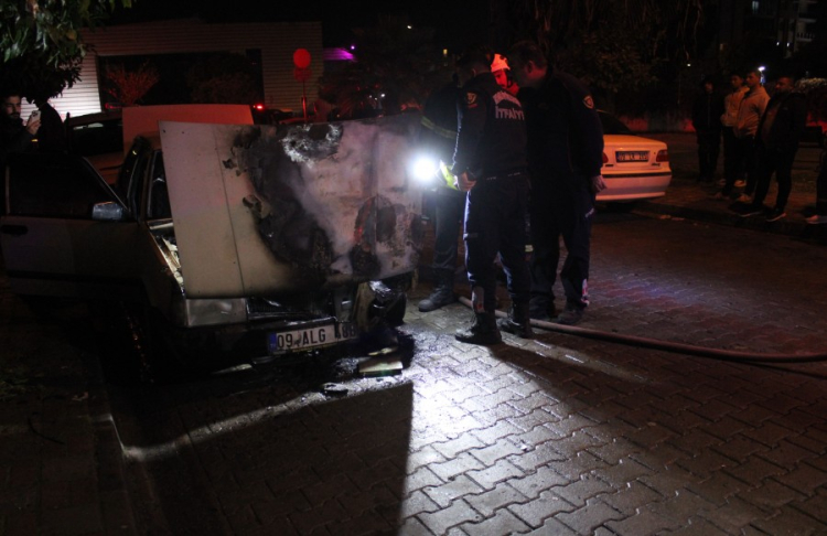 Yangın, Efeler ilçesi Cumhuriyet Mahallesi 1997 Sokak üzerinde saat 21.00 sıralarında meydana geldi. Edinilen bilgiye göre S.B.'ye ait park halindeki 09 ALG 488 plakalı otomobilde henüz bilinmeyen bir nedenle yangın çıktı. Kısa sürede büyüyen yangın aracın ön bölümünü sardı. Alevleri fark eden vatandaşlar durumu 112 Acil Çağrı Merkezi'ne bildirdi. İhbar üzerine bölgeye polis ve sağlık ekipleri sevk edildi. Kısa sürede bölgeye gelen itfaiye ekipleri, alevlere müdahale ederek yangını söndürdü. Soğutma çalışmalarının ardından yangının çıkış nedeninin belirlenmesi için inceleme başlatılırken, yangının otomobilin elektrik aksamından çıkmış olabileceği tahmin ediliyor.