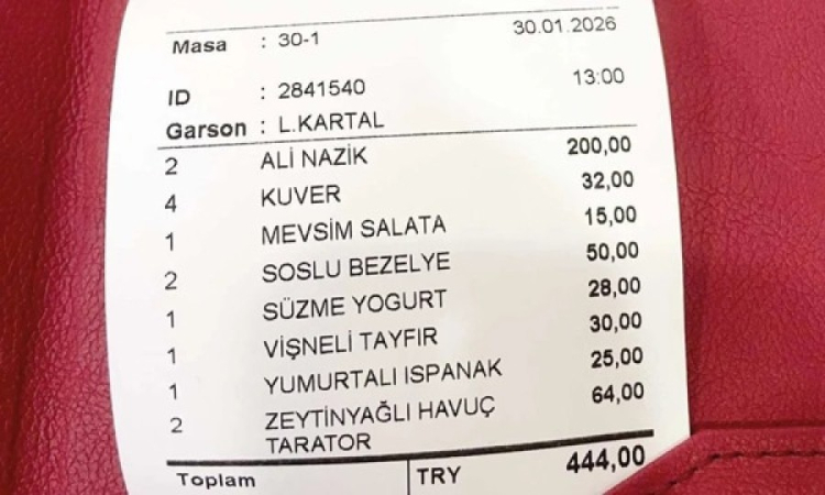Meclis lokantasına yemeğe giden 4 kişi 444 liralık yemek ücreti ödedi. Bunun 32 lirası kuverden oluştu. Kişi başı 8 TL'lik kuver ücreti alındığı görüldü.