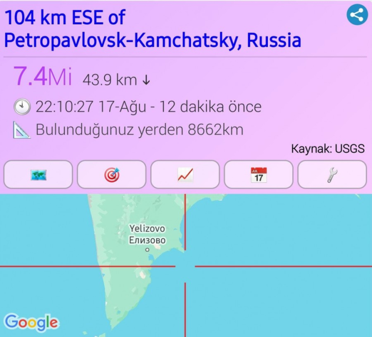 Edinilen bilgiye göre, Rusya'da 7.4 büyüklüğünde deprem meydana geldi.