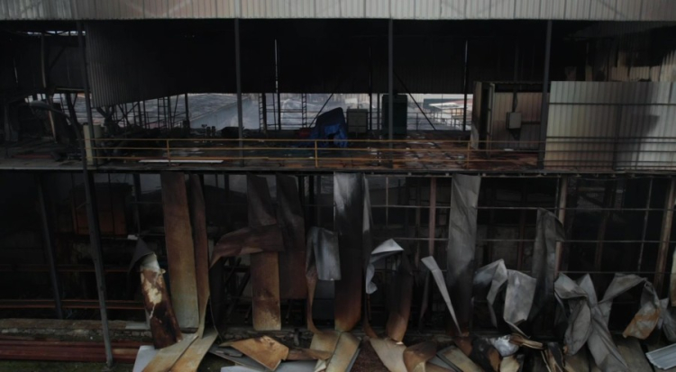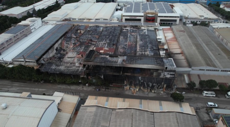 Dron ile kaydedilen görüntülerde, otomotiv sektörüne yönelik metal yüzey işlem proseslerinin yürütüldüğü fabrikanın tamamen kullanılamaz hale geldiği net şekilde görüldü. Yangının etkisiyle fabrikanın duvarlarının büyük bölümünün yıkıldığı, yapının siyah is ve duman izleriyle kaplandığı dikkat çekti.