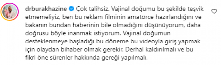 Sağlık Bakanlığı, tıbben gerekli olmayan sezaryenlerin azaltılması için "Normal Doğum Eylem Planı" hazırladı ve kamu spotu paylaştı. Spot sosyal medyada tepkilere yol açtı.