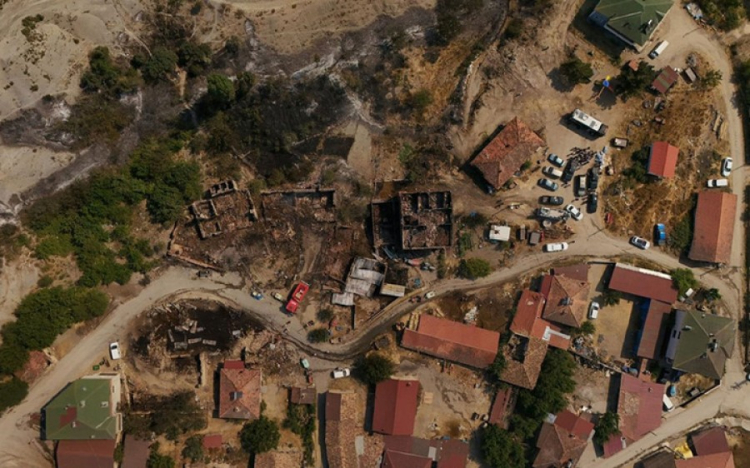 Yoğun dumanın hakim olduğu bölgede ekipler, söz konusu mahallelerde yanan ev ve yapılarda soğutma işlemi yapıyor.