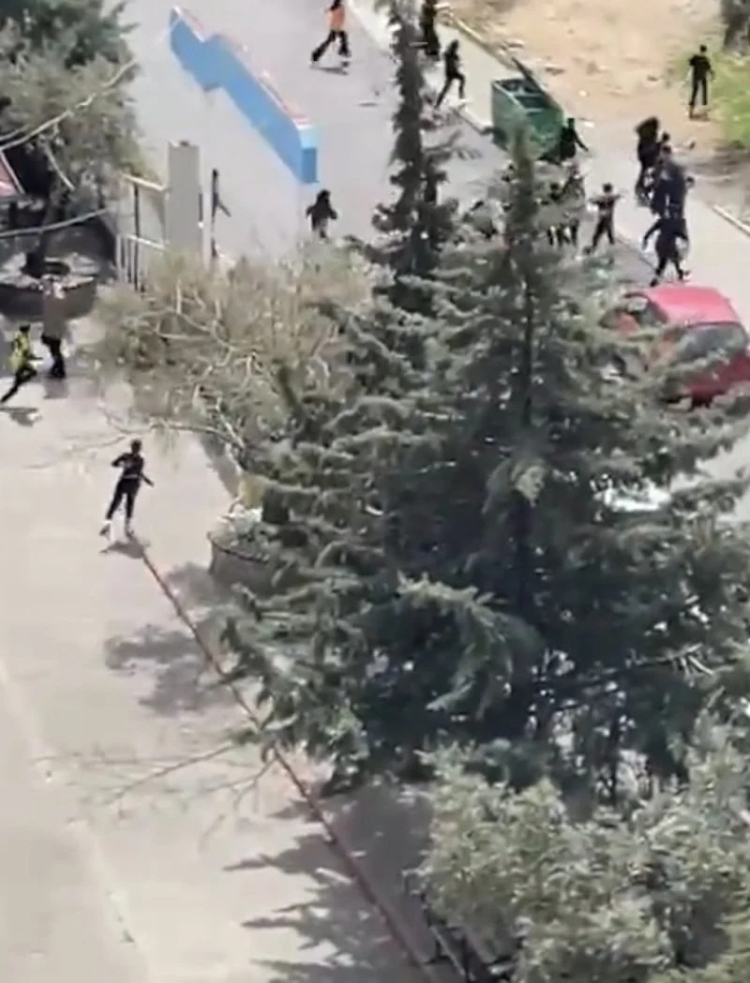 Saldırı sırasında okul bahçesinde büyük bir panik yaşandığı ve öğrencilerin kaçıştığı anlara dair görüntüler ortaya çıktı.