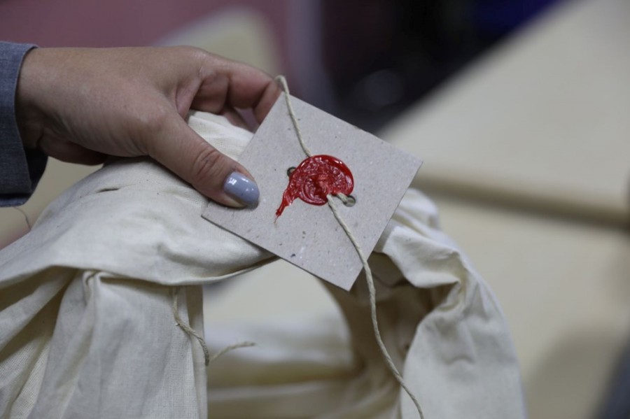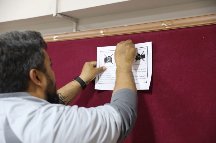 Oy verme işlemini başlatmadan önce hazırlıklarını yapan görevliler, sandık başkanları tarafından söylenen kelimeleri tekrar ederek yeminlerini etti.