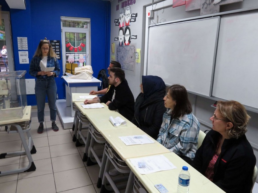 Cumhurbaşkanlığı seçiminin 2'nci turunda sandıklarda görev alan sandık başkanları ve memurlar ile parti gözlemcileri, sabah erken saatlerde görev yapacakları okullara geldi.
