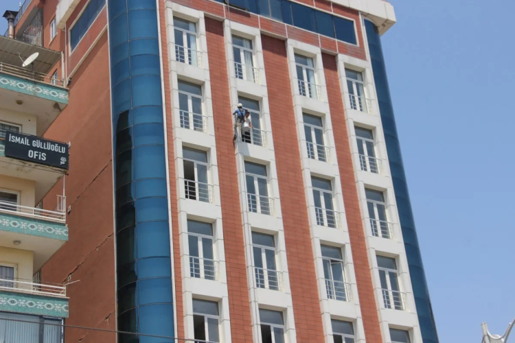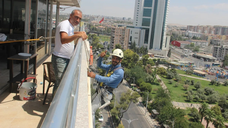 Mesleğini severek yaptığını aktaran işçi Mehmet Özçimen, "Cam temizliği yapıyoruz, boya yapıyoruz, montaj yapıyoruz, ondan sonra her türlü tamirat, tadilat işleri yapıyoruz. İskele kurmadan iple çevre rahatsızlık vermeden çalışıyoruz.