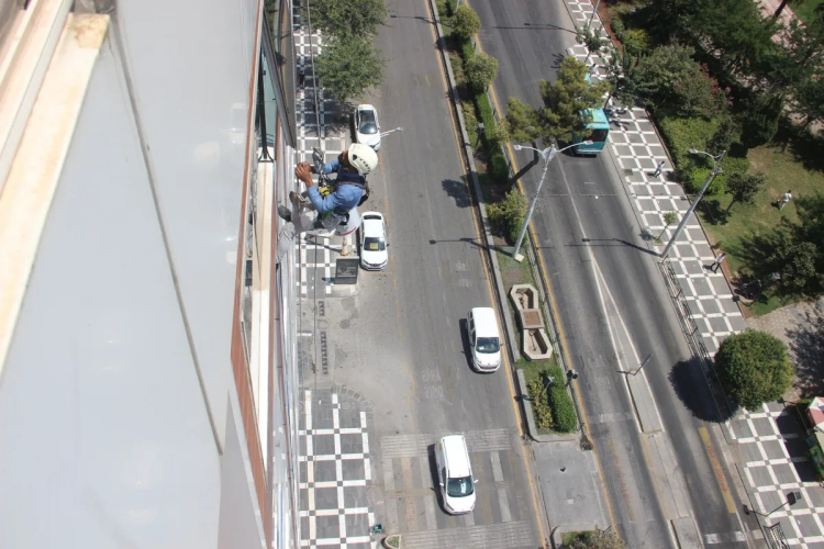Bu bölgede genellikle 10-15 katlı binalarda çalışıyoruz. 50-60 metre yüksekliğindeki binalarda çalışıyoruz. Adrenalin ruhlu insanların yükseklik korkusu olmaz. Dağcılık malzemelerimiz uluslararası çapta üretilen malzemelerdir. Malzemelerimize güvenip işimizi severek yapıyoruz.