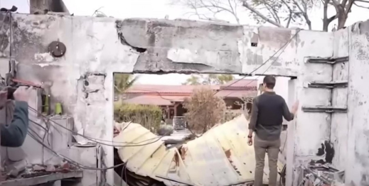 YIKILMIŞ EVLERİN ÖNÜNDE POZ VERİYORLAR