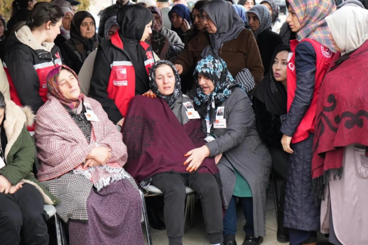 Cenazede güçlükle ayakta duran şehidin annesini yakınları teselli ederken, şehidin kardeşleri gözyaşlarına boğuldu.