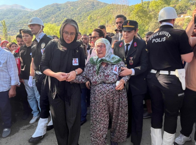 Çevik Kuvvet Şube Müdürlüğüne bağlı polis ekipleri tarafından cenaze aracından indirilip şehidin tabutuna sarılan aile fertleri büyük üzüntü yaşadı. Şehidin eşi Nazire Şahin, çocukları Emir ve Sude ile annesi Sabriye Şahin'in feryatları yürek dağladı.