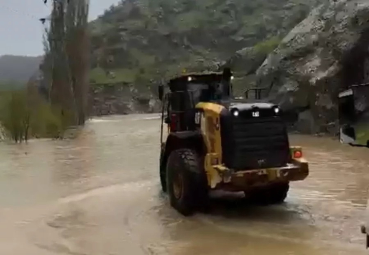 Hakkari'nin Derecik ilçesinde taşkın nedeniyle kapanan yolda mahsur kalan 18 yaşındaki gencin cenazesi, iş makinesi yardımıyla mezraya ulaştırıldı.