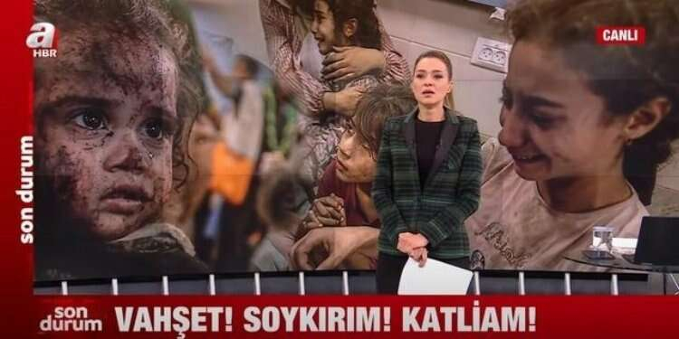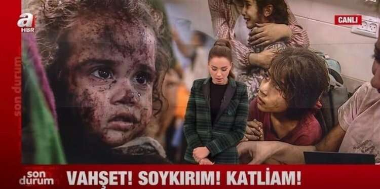 A Haber sunucusu Cansın Helvacı, hastane katliamından bahsederken gözyaşlarına boğuldu, konuşmakta güçlük çekti. Dünyanın 12 gündür bölüm bölüm dizi izler gibi İsrail'in saldırılarını izlediğini söylerken Helvacı zor anlar yaşadı.
