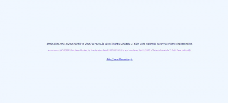Bilgi Teknolojileri Kurumu (BTK) tarafından paylaşılan bilgilere göre Armut, 04/12/2025 tarihli ve 2025/10762 D.İş sayılı İstanbul Anadolu 7. Sulh Ceza Hakimliği kararıyla erişime engellendi.