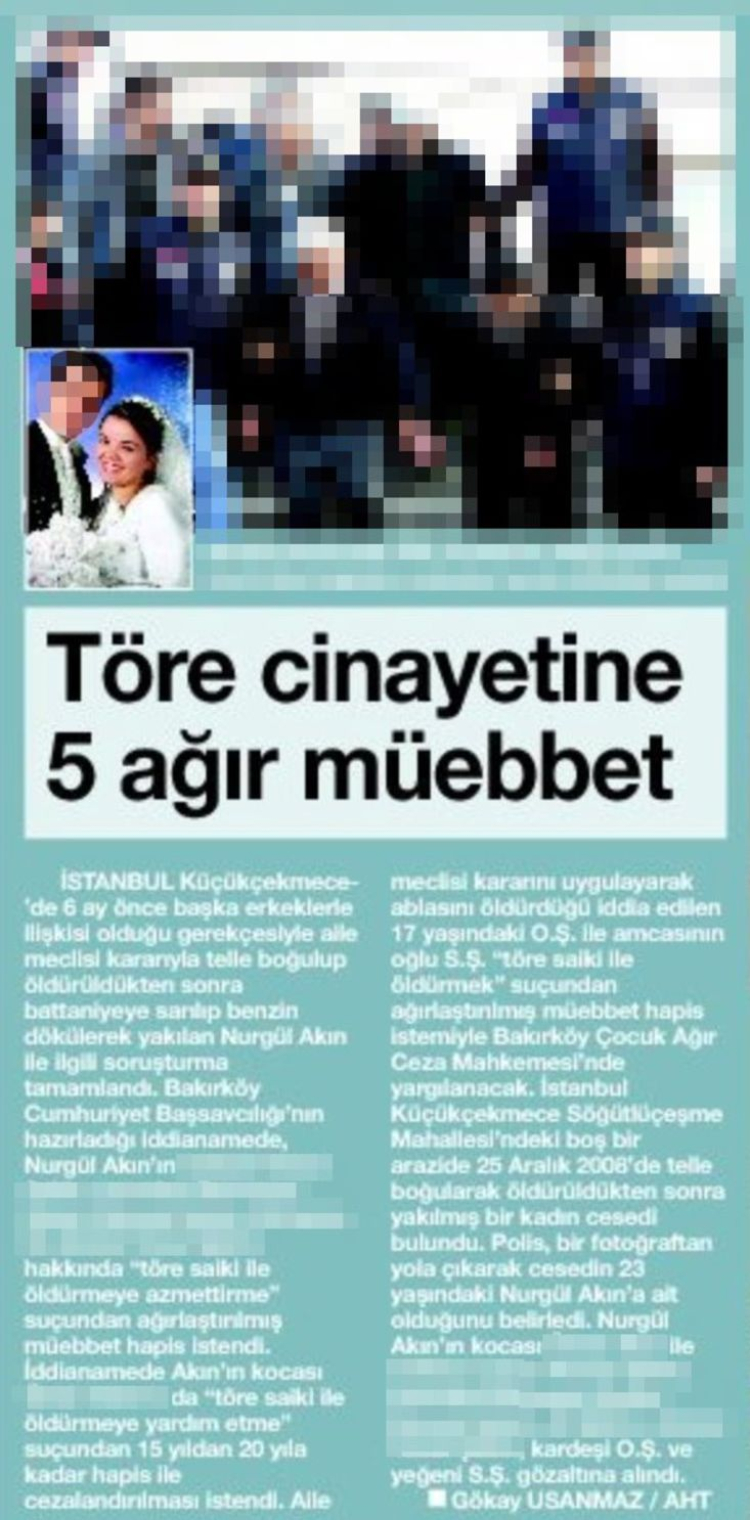 Bu taktiğin işe yaradığını belirten cinayet uzmanı Zakir Altuntaş “Bize gelen bir bilgi maktulümüzün kimliğine ulaşmamızı sağladı. Nurgül adındaki maktulümüz, evli ve 23 yaşlarında çıktı. Tabii hemen kocasını ve ailesini bulduk. İlk bilgilerine başvurduğumuzda kimse bu cinayetle bir ilgilerinin olmadığını söylüyordu. Şaşkınlık içinde anlatıyorlardı. Biz aileyi ve kocayı şüpheli gördük. Ama bunu delillendirmemiz gerek. Geniş çaplı bir araştırma başlattık. Dikkatimizi çeken bir bilgiye ulaştık. Cinayetten birkaç gün önce kızın dedesi memleketten gelmişti. Bu bir töre cinayeti olabilirdi”. Genç kadının kimliği belirlenmişti. Vahşete kurban giden kadın 23 yaşındaki Nurgül Akın’dı.