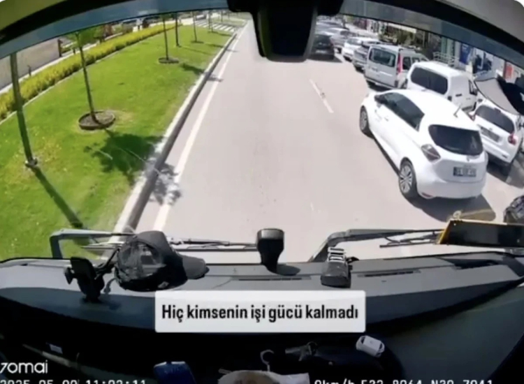 Trafik polisinin müdahale etmesi ve ceza kesmesi sonrası ise tır sürücüsü, "Helal etmiyorum" dedi.